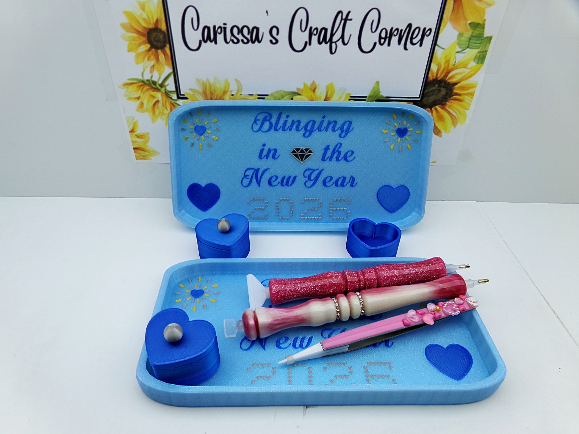 Bling this New Year with this fabulous Blinging in the New Year 2026 Event Trinket Tray With Heart Shaped Trash Drill pot CoverMinder, This glam organizer is designed to hold your pens, tweezers, washi tape, trash pots, and crafting essentials in one dazzling spot. With its festive 2026 celebration style, it brings sparkle and pizzazz to your creative space while keeping everything perfectly organized. Whether you're a diamond painting enthusiast or shopping for one, this tray is the stylish way to start the new year ready to create. Get your supplies sorted and your glitter game strong!(pens,tweezer not Included)