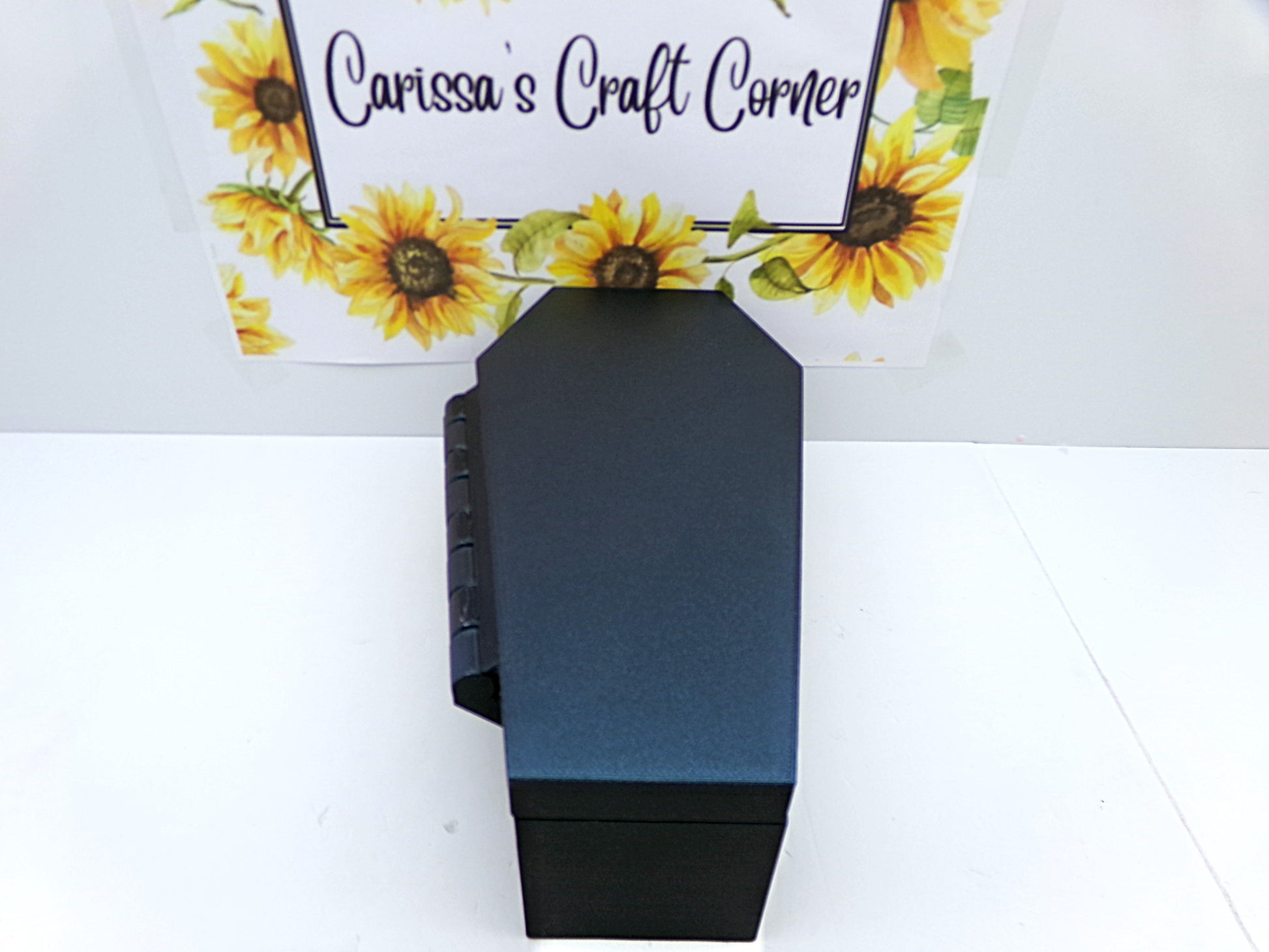 This coffin-shaped box with a hinged lid is a delightfully spooky way to store your little treasures. Its quirky design adds a playful touch to any room, making it perfect for Halloween vibes or everyday fun. Open it up to reveal a secret spot for all your mysterious keepsakes!