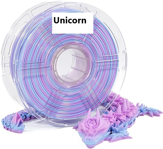 Colors may vary slightly due to filament availability. Rainbow, Dual, and Tri colors have a random pattern. so every print will be different.