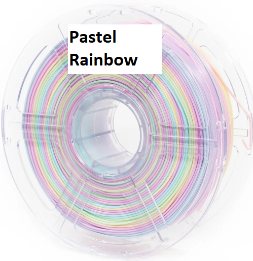 Colors may vary slightly due to filament availability. Rainbow, Dual, and Tri colors have a random pattern. so every print will be different.